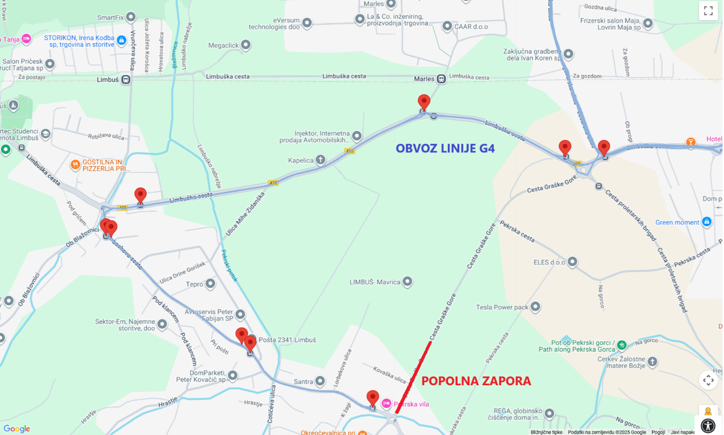 V času zapore bodo avtobusi linije G4 Studenci vozili po Limbuški in Lackovi cesti v obeh smereh.