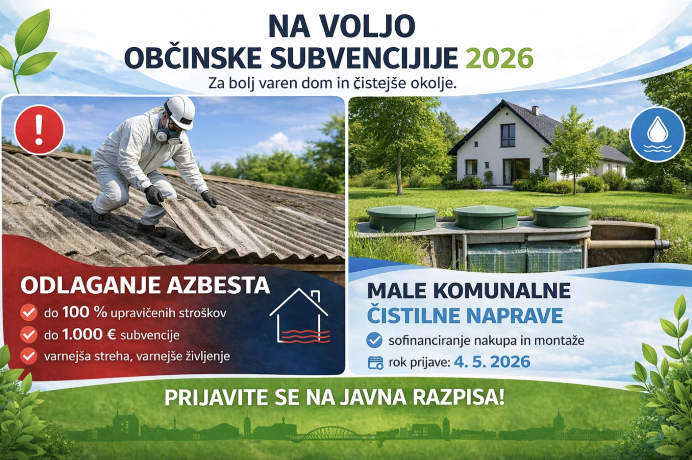 Mestna občina Maribor je objavila javni razpis za subvencioniranje stroškov odlaganja azbestnih plošč, nastalih pri rekonstrukciji, menjavi strehe oziroma rušitvi objektov, na katerih je bila nameščena kritina iz azbestcementa, na območju MO Maribor. Razpis je odprt do porabe sredstev oziroma najkasneje do 30. junija 2026.